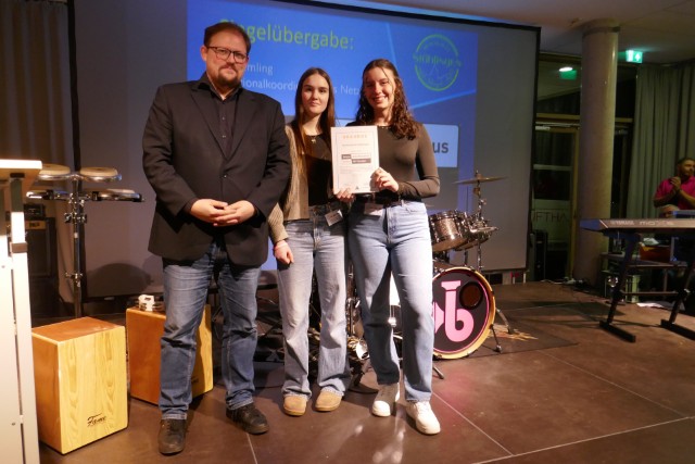 Bei einer stimmungsvollen Feier im Rahmen unseres „Tag der offenen Tür“ zeigte die Schulgemeinschaft, wofür sie steht: Respekt, Vielfalt und ein faires Miteinander. Für die passende Atmosphäre sorgte die Band Brasslufthamma, die auch die Patenschaft für das Projekt übernommen hat. Damit ist unsere Schule Teil eines bundesweiten Netzwerks, das sich aktiv für Toleranz, Respekt und ein diskriminierungsfreies Miteinander einsetzt. Die Siegelübergabe erfolgte durch den Regionalkoordinator David Emling. Mit dem Siegel verpflichtet sich die Schulgemeinschaft auch weiterhin, im Schulalltag Verantwortung zu übernehmen und Courage zu zeigen – für eine Schule, in der sich alle sicher, willkommen und respektiert fühlen.